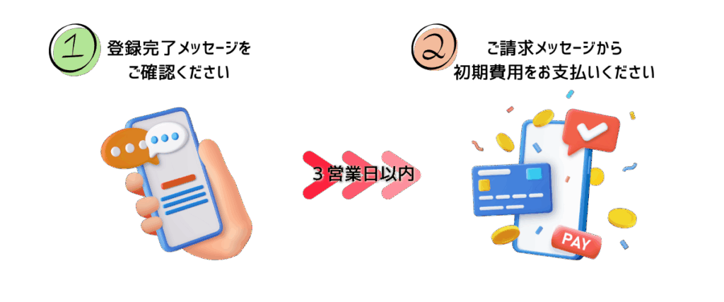 - 3営業日以内に送信されるメッセージから初期費用のお支払い
